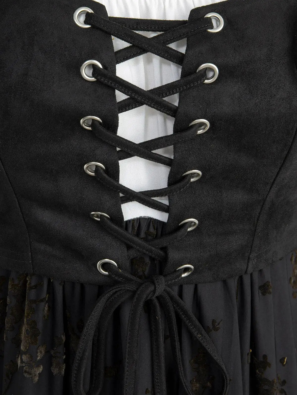 With its flowing high-low hem and romantic floral flocking, this dress brings together soft femininity and statement style. The cold shoulder cut adds a flirty edge, while the lace-up detail and poet sleeves create that dreamy, boho-inspired look youβll absolutely love π